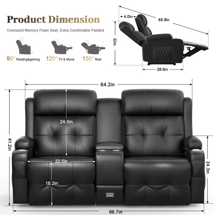 • 【Comfortable Theater Setting】-The padded-pillow-designed headrest loveseats are made with high-end premium FSC-certified PU leather(easy to clean and maintain) and cloud-like soft, thickened memory foam cotton. Pockets on both sides of the couch and a storage compartment in the middle provide enough space for stuff like books, magazines, and cell phones. There are four cup holders. Raise a toast to your partner on the sofa and loveseat set!